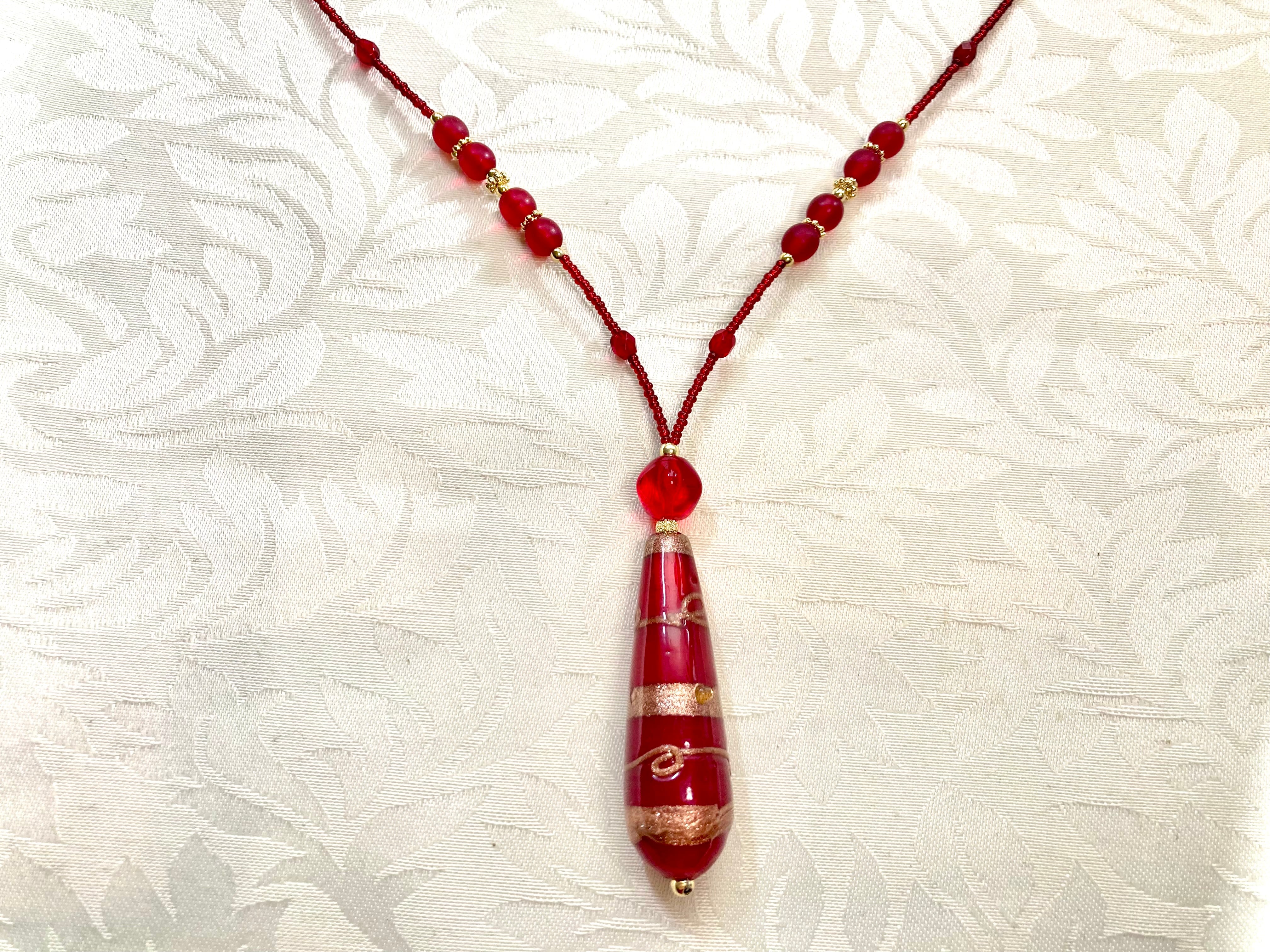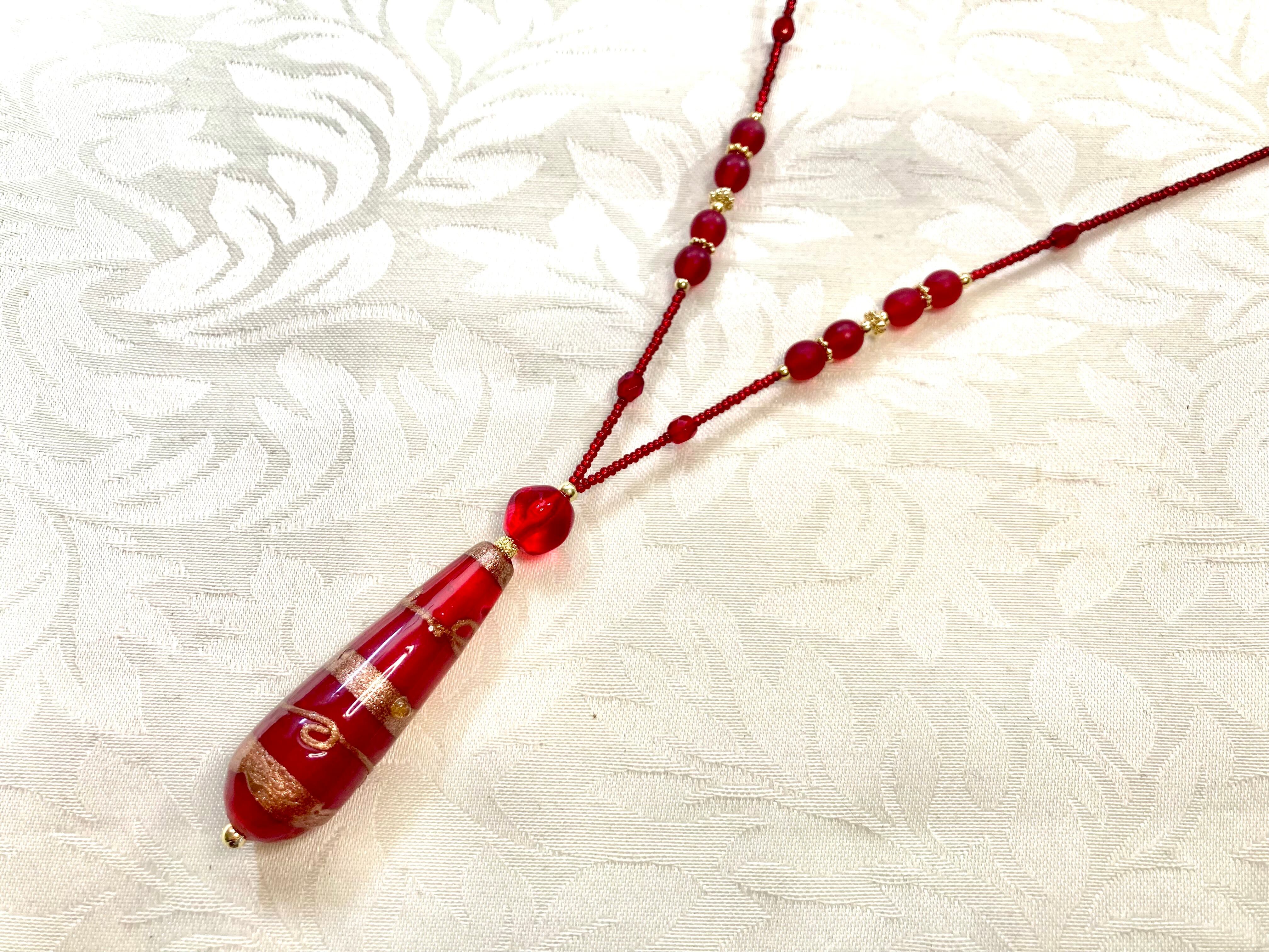 落ち着いた赤の色合いが魅力的なアンティークヴェネチアンガラスのネックレスが新登場!