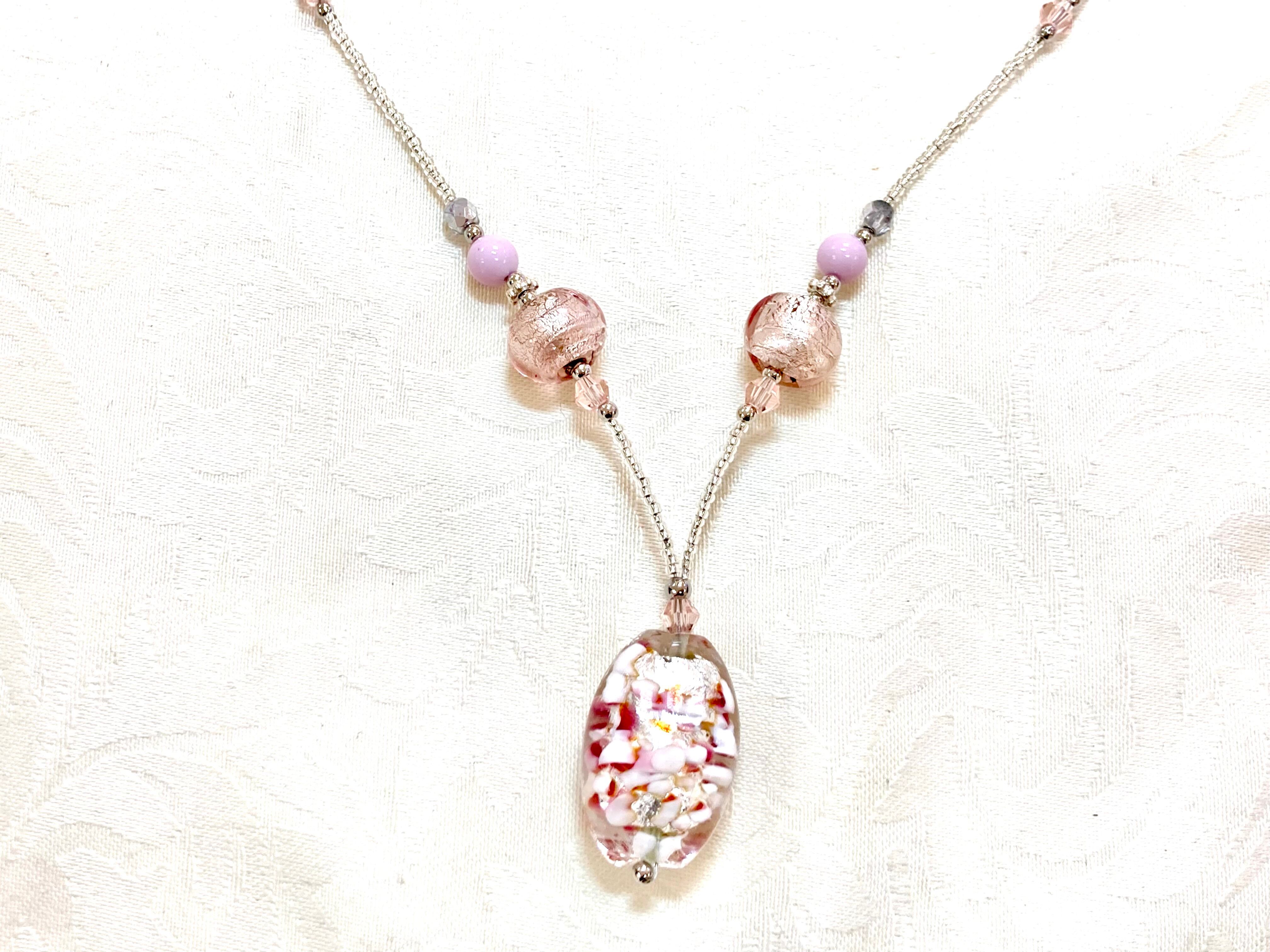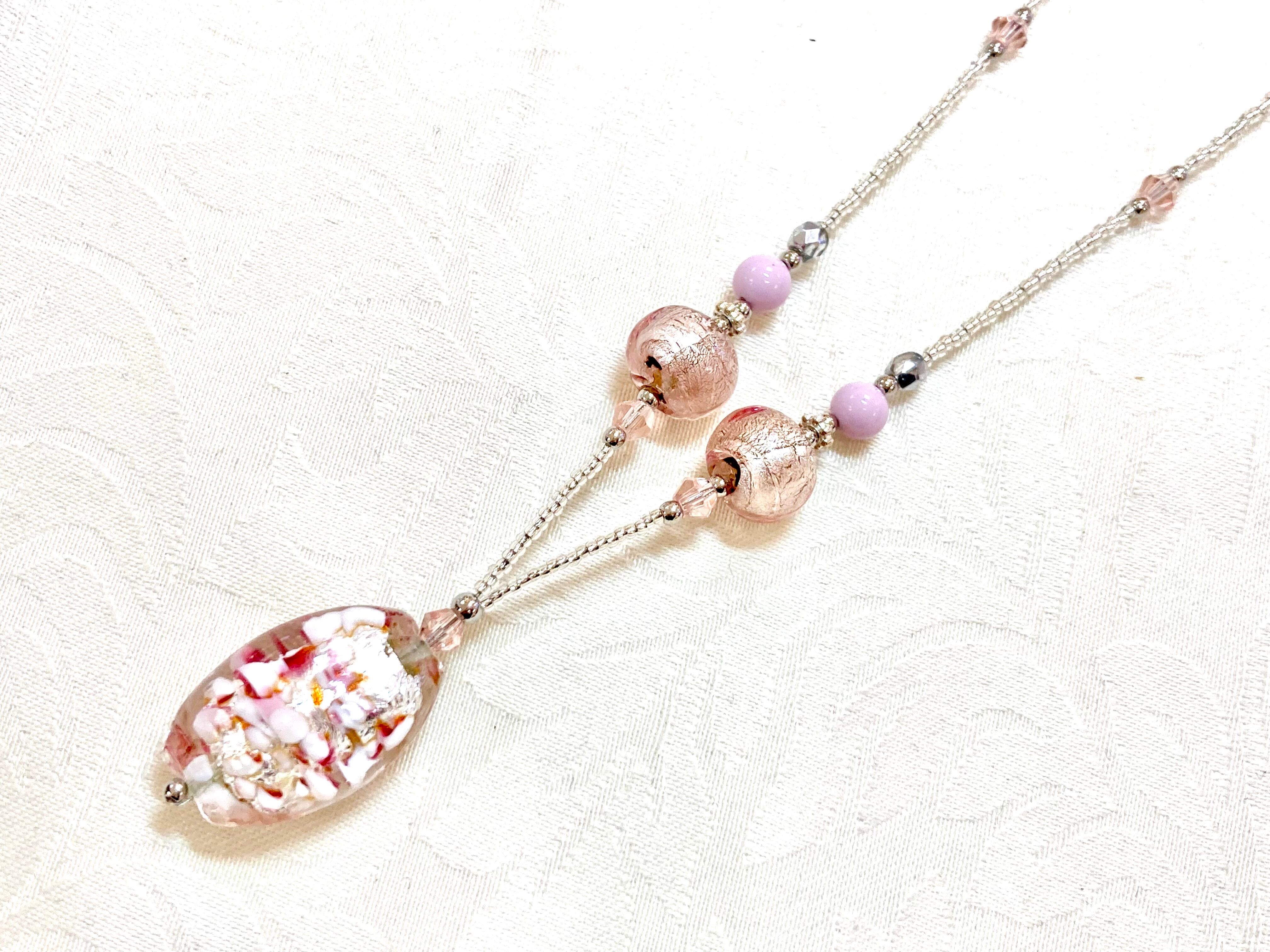 【ネックレス】Petalo Rosato(ペタロ・ロザート)が新登場!50cmの華やかな長さで、首元に優雅な輝きを添えます。柔らかなピンク色の美しいヴェネチアンガラスが、どんなコーディネートにも独特のエレガンスを加え、あなたの魅力をより一層引き立てます。カジュアルな日常から特別な場面まで、幅広くお楽しみいただけるアイテムです。