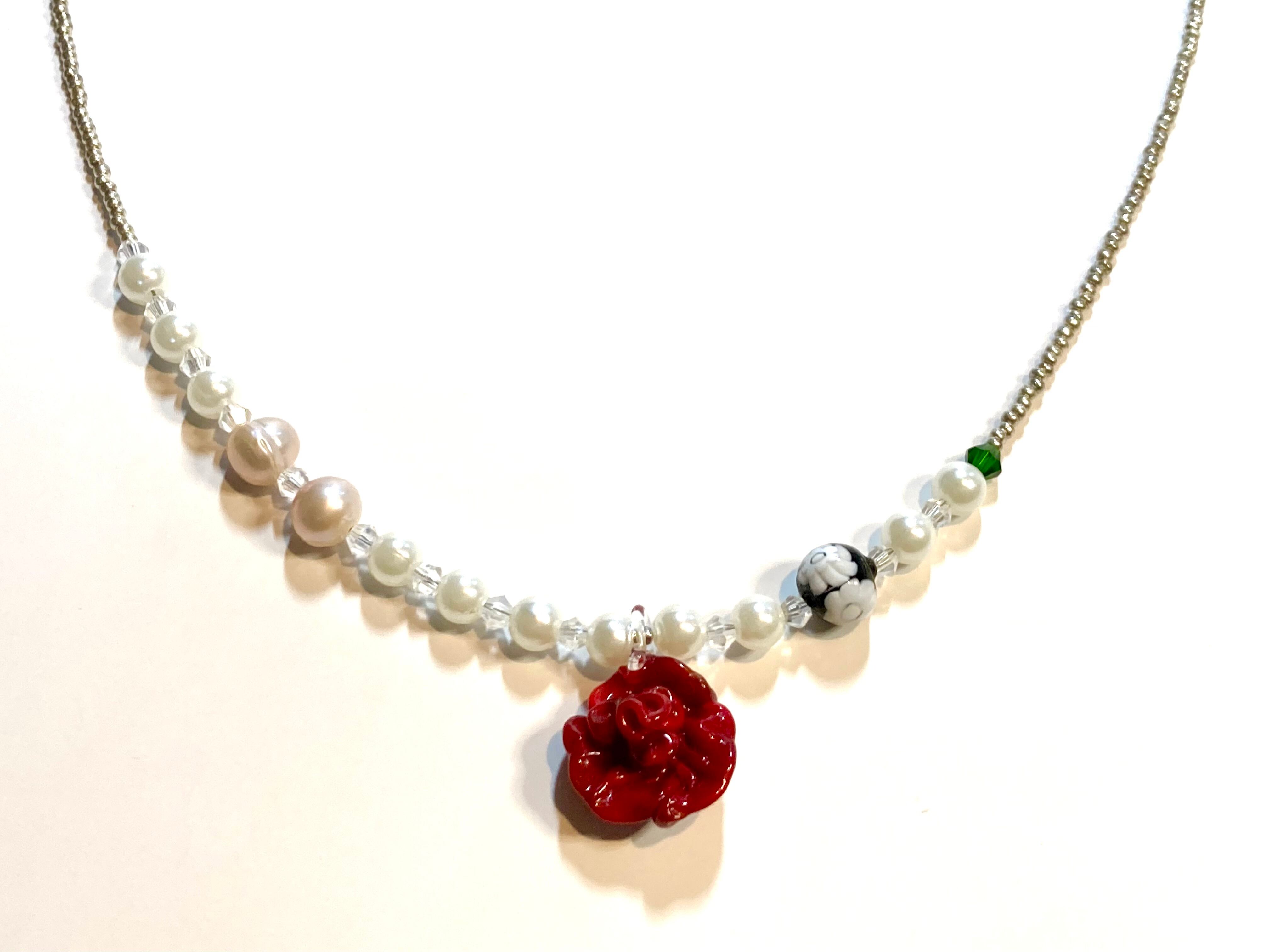 【ネックレス】Rosetta(ロゼッタ)が新登場!49cmの優雅な長さで、首元にバラの美しさを華やかに演出します。特製のヴェネチアンガラスと淡水パールが、あなたのスタイルに独特の魅力をもたらし、その美しさを際立たせます。デイリーから特別なシーンまで、さまざまな瞬間を彩るアクセサリーです。