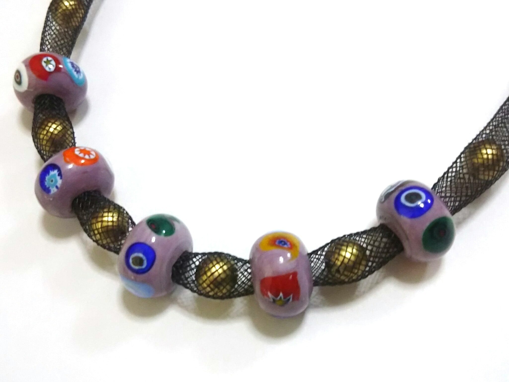 ヴェネチアンのトロール型ムリーナビーズをレジルネットに合わせた一品です。