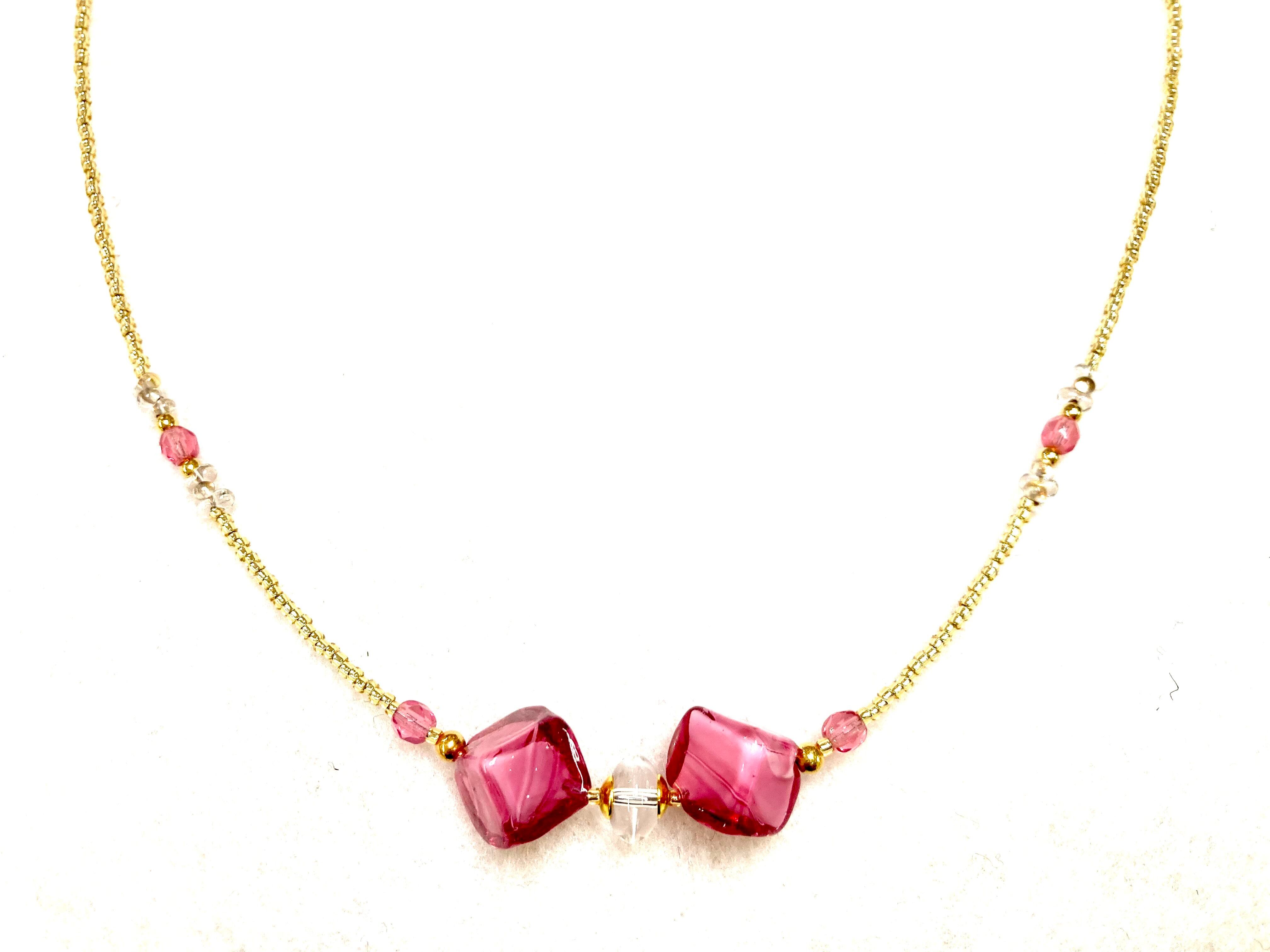 【ネックレス】Giochi di Luce(ジョーキ・ディ・ルーチェ)が新登場!43cmのエレガントな長さが、首元に輝きを与えます。美しいヴェネチアンガラスのキューブは、光を反射し、あなたのスタイルに独特の魅力をプラスします。日常使いはもちろん、特別な日にも相応しい洗練されたアクセサリーです。