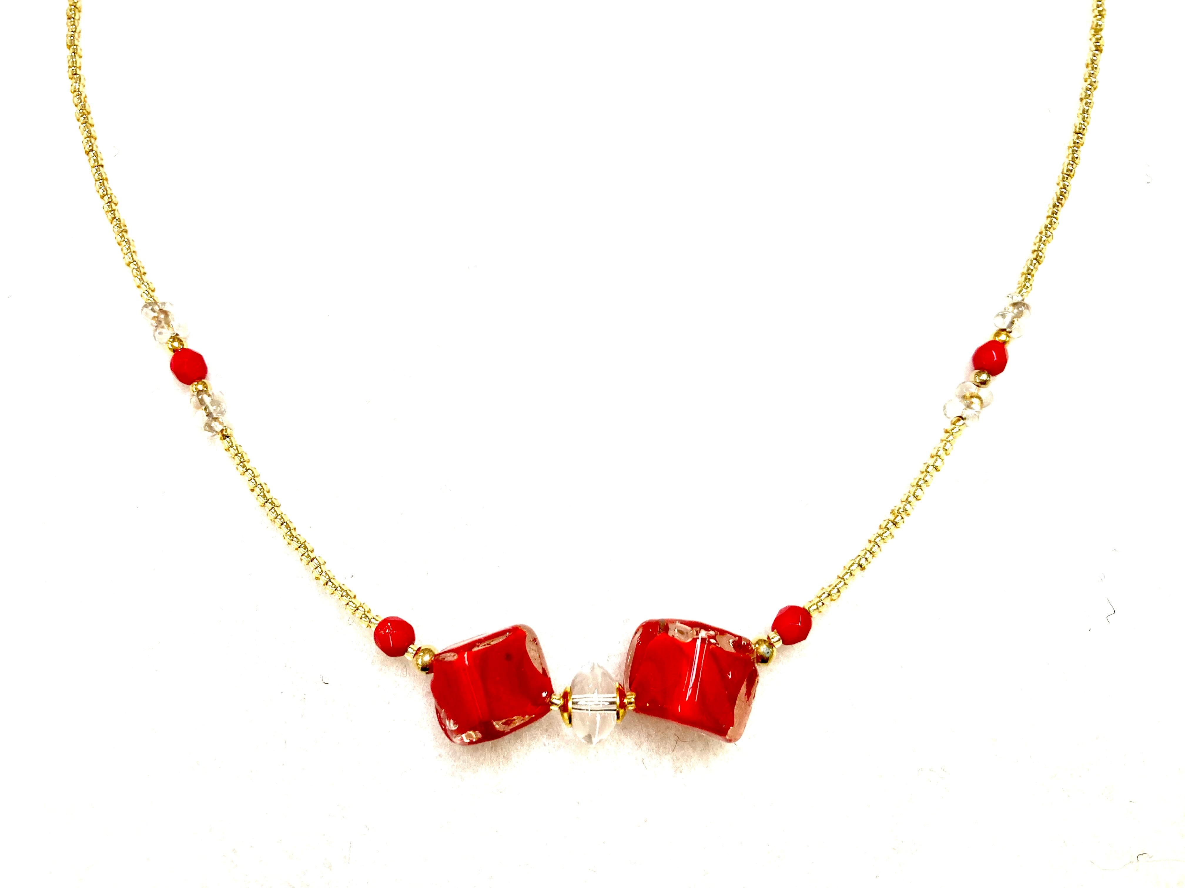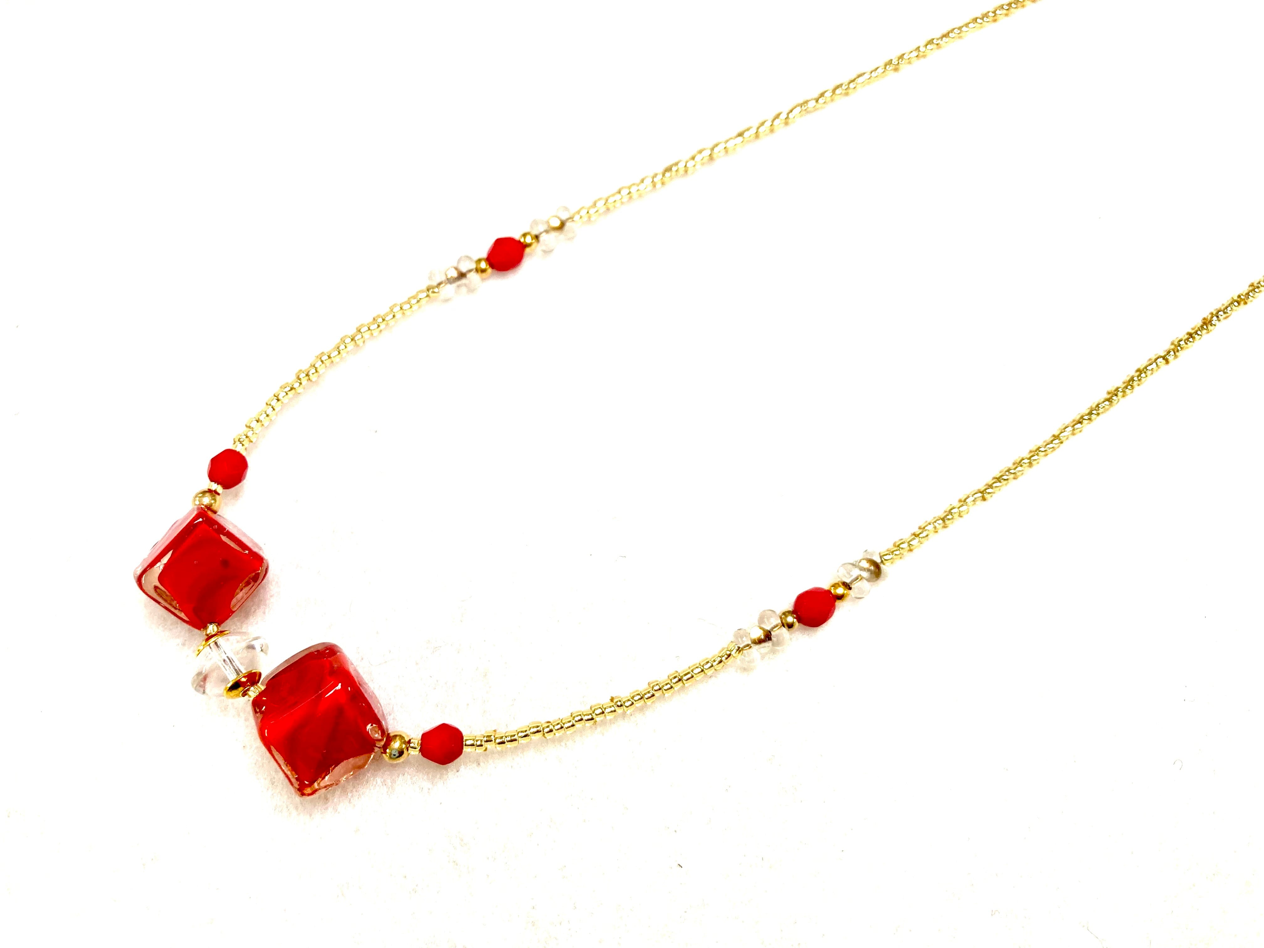 【ネックレス】Giochi di Luce(ジョーキ・ディ・ルーチェ)が新登場!43cmのエレガントな長さが、首元に輝きを与えます。美しいヴェネチアンガラスのキューブは、光を反射し、あなたのスタイルに独特の魅力をプラスします。日常使いはもちろん、特別な日にも相応しい洗練されたアクセサリーです。