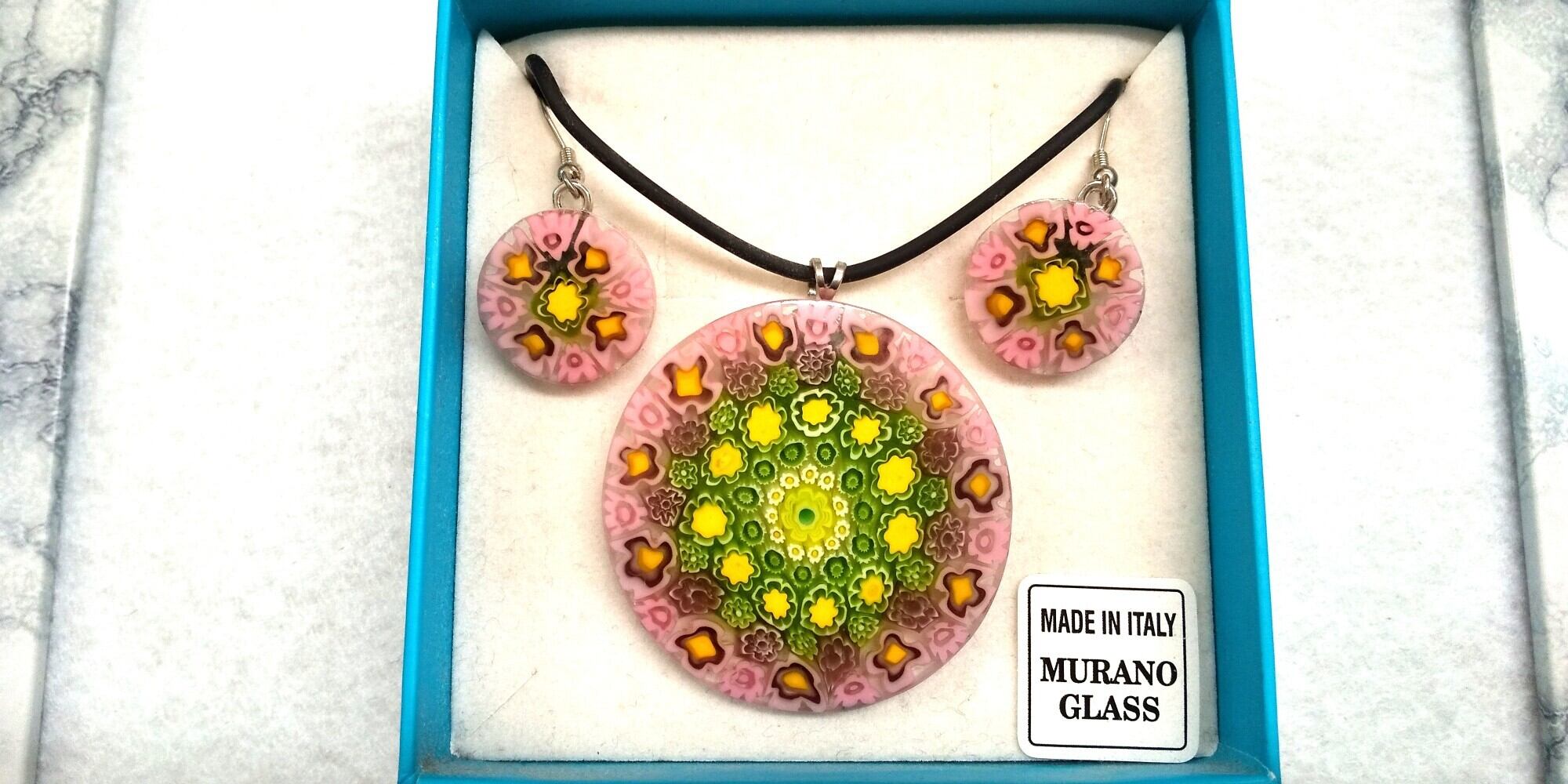 ミルフィオリペンダントとピアスのセットです