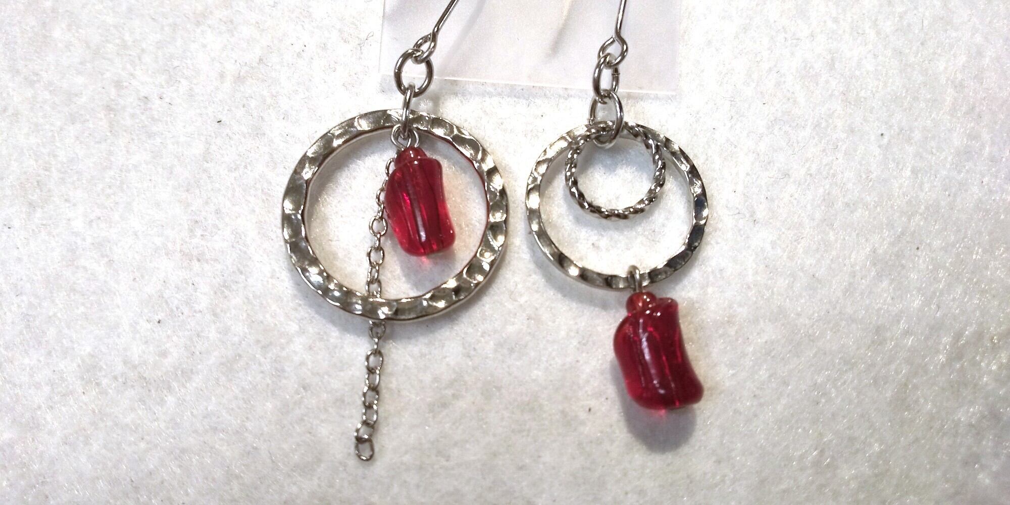 ヴェネチアン 10×5mmとメタルリング21mm17mm使ったピアスです。