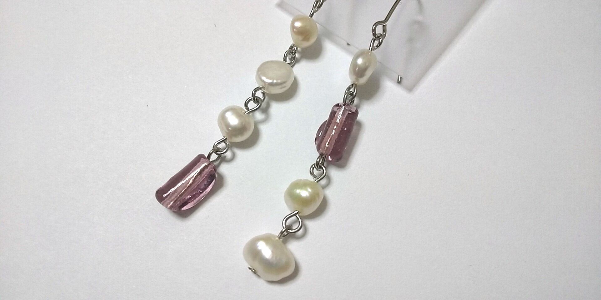 ヴェネチアン 5×10mmと淡水パール6mmバロックを使っています