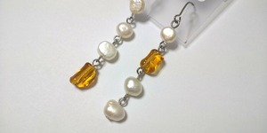 【ピアス/イヤリング】アシンメトリー 淡水パール トパーズ