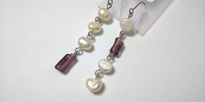 【ピアス/イヤリング】アシンメトリー 淡水パール アメジスト