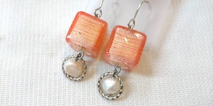 【ピアス/イヤリング】キューブ×パール ピーチ