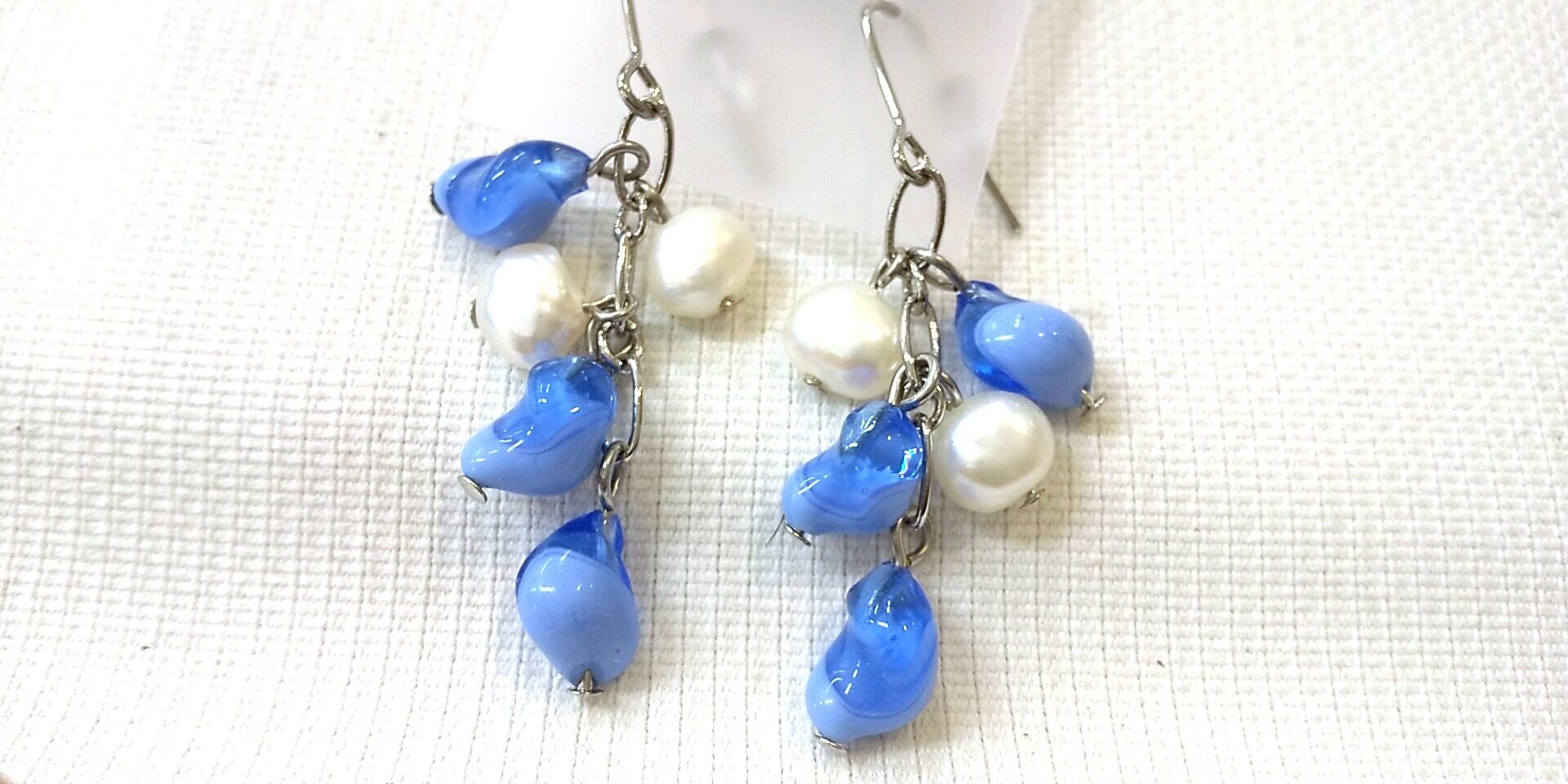 【ピアス/イヤリング】ポテトと淡水パールの揺れるピアス ブルー