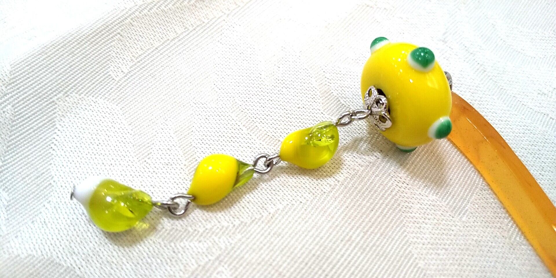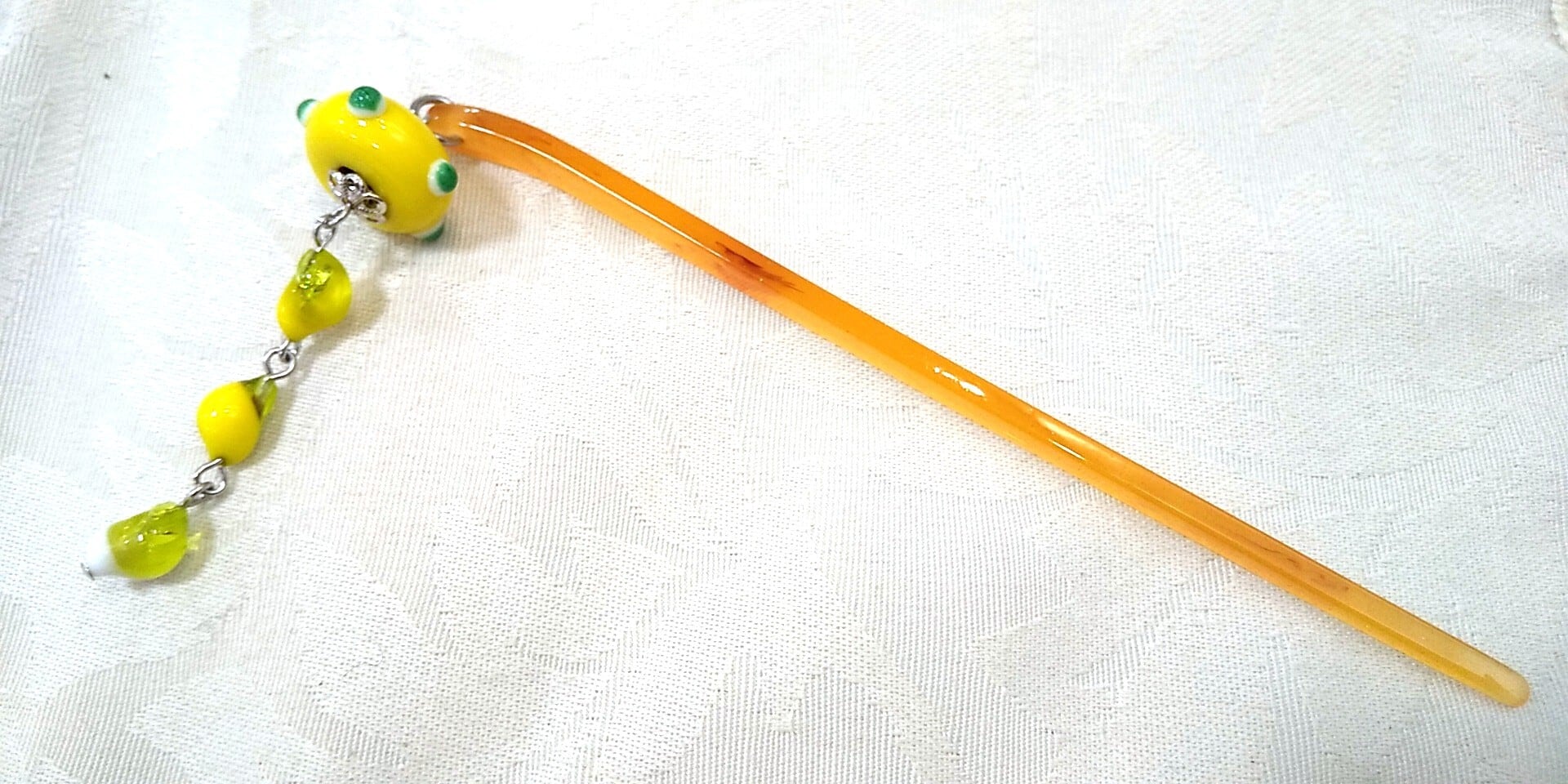 ヴェネチアン ドーナツ15×8mmとポテト10×6mmが付いたかんざしです
