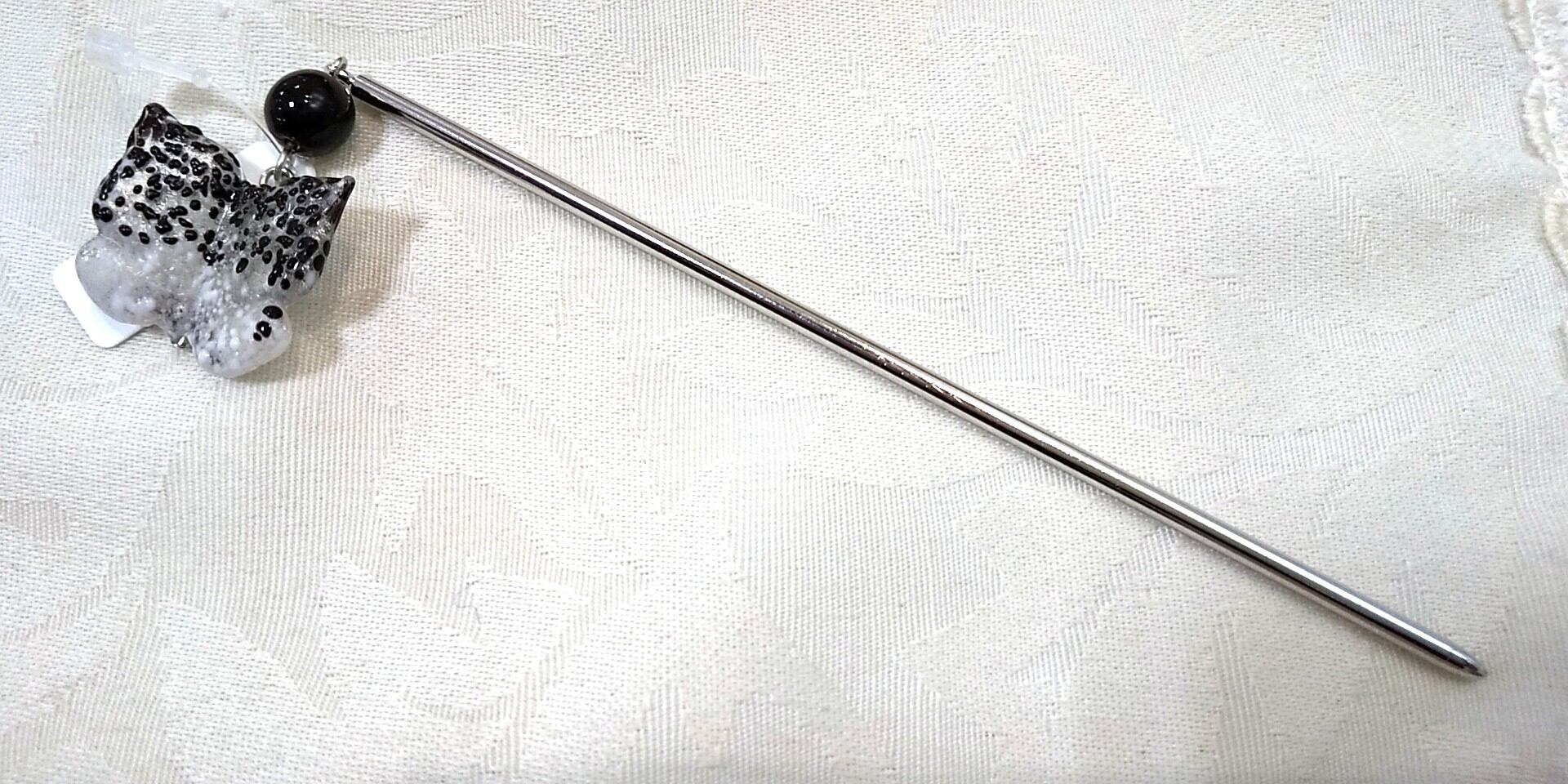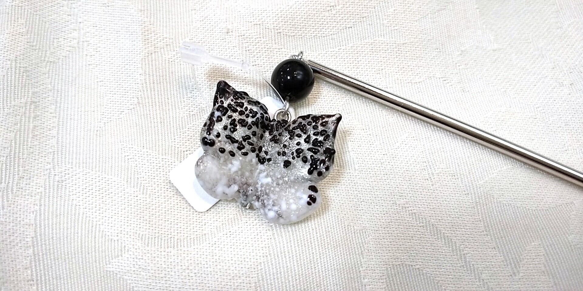 ヴェネチアン バタフライ20mmとトンド8mmが付いたかんざしです