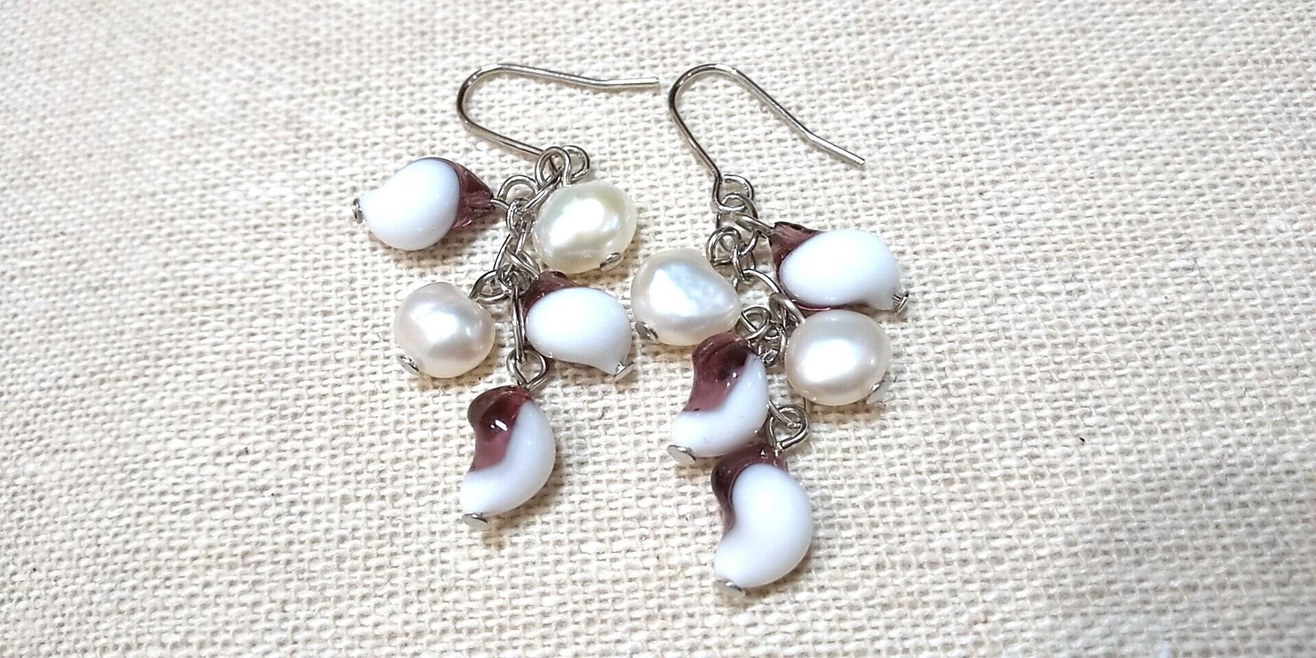 【ピアス/イヤリング】ポテトと淡水パールの揺れるピアス アメジスト×ホワイト