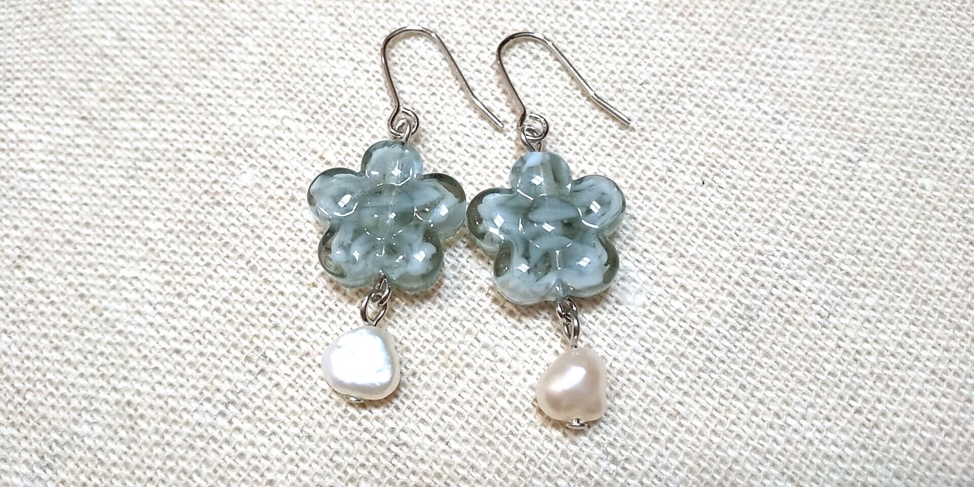 ヴェネチアン フラワー15×7mmと淡水パールを使っています