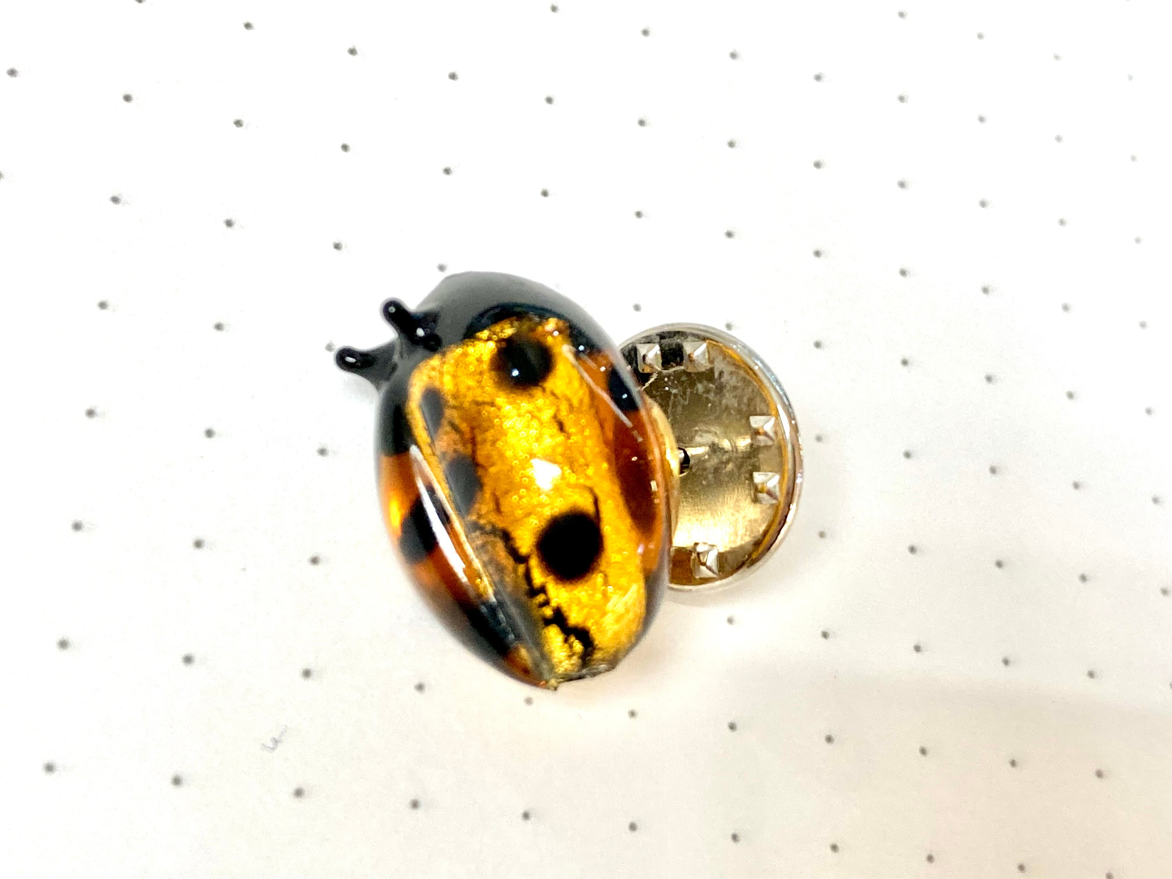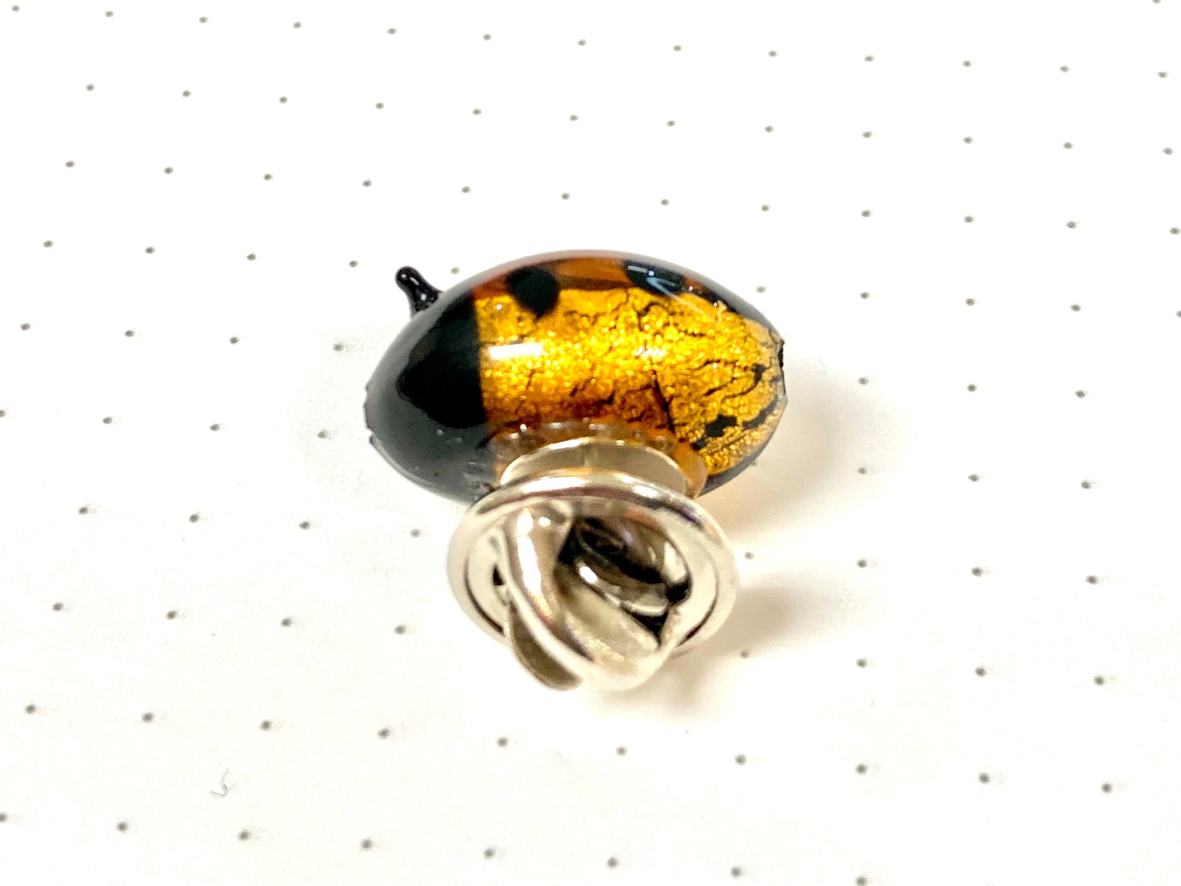 てんとう虫のタックピンが登場しました!この可愛らしいアクセサリーは、ヴェネチアンガラスで作られた一点ものです。