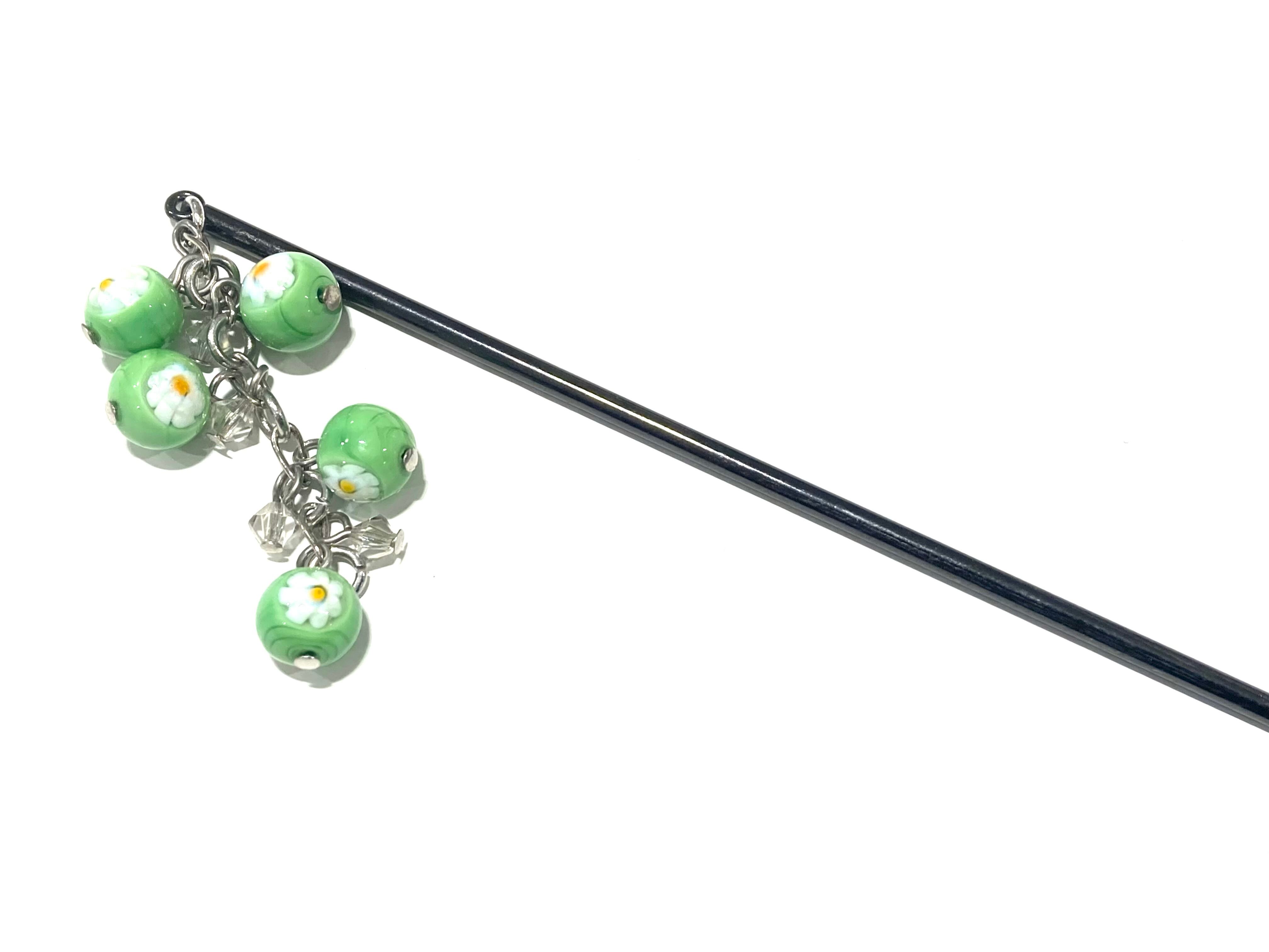 ヴェネチアン トンド ムリーナ8mmとスワロフスキー4mmが付いたかんざしです