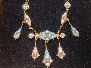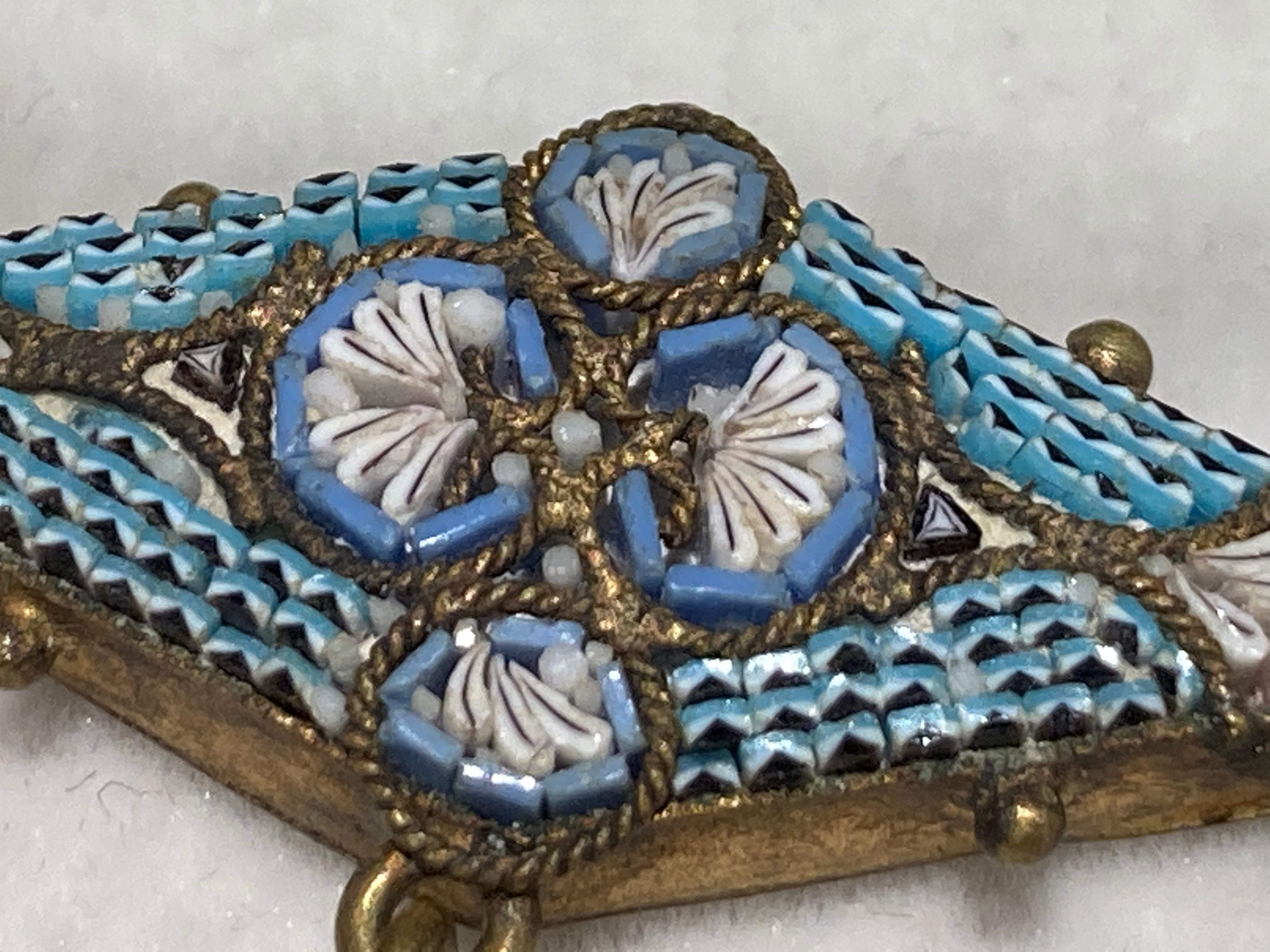 モザイクガラスとはテッセラと呼ばれるエナメル顔料を加えた色ガラス片で静物や風景などの細密画を表現した伝統工芸品で、建造物の装飾ではなく、持ち運び出来る小さな作品にモザイクを施す新しい試みから始まりました。ヨーロッパ文化の薫り高い装身具や小物などの宝飾品として、絶大な人気があります。