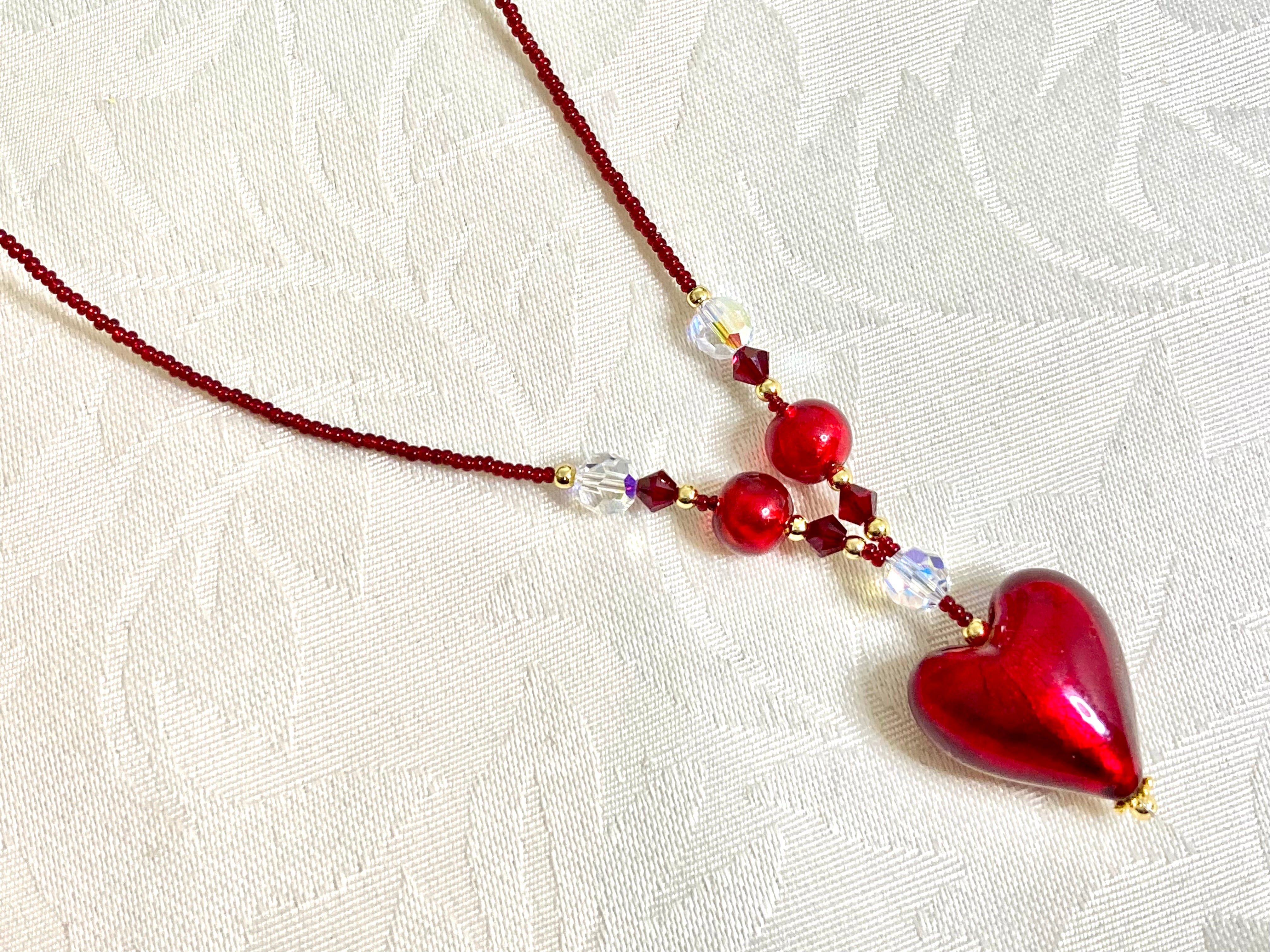 愛を象徴する美しいハートモチーフのヴェネチアンガラスネックレスです。
