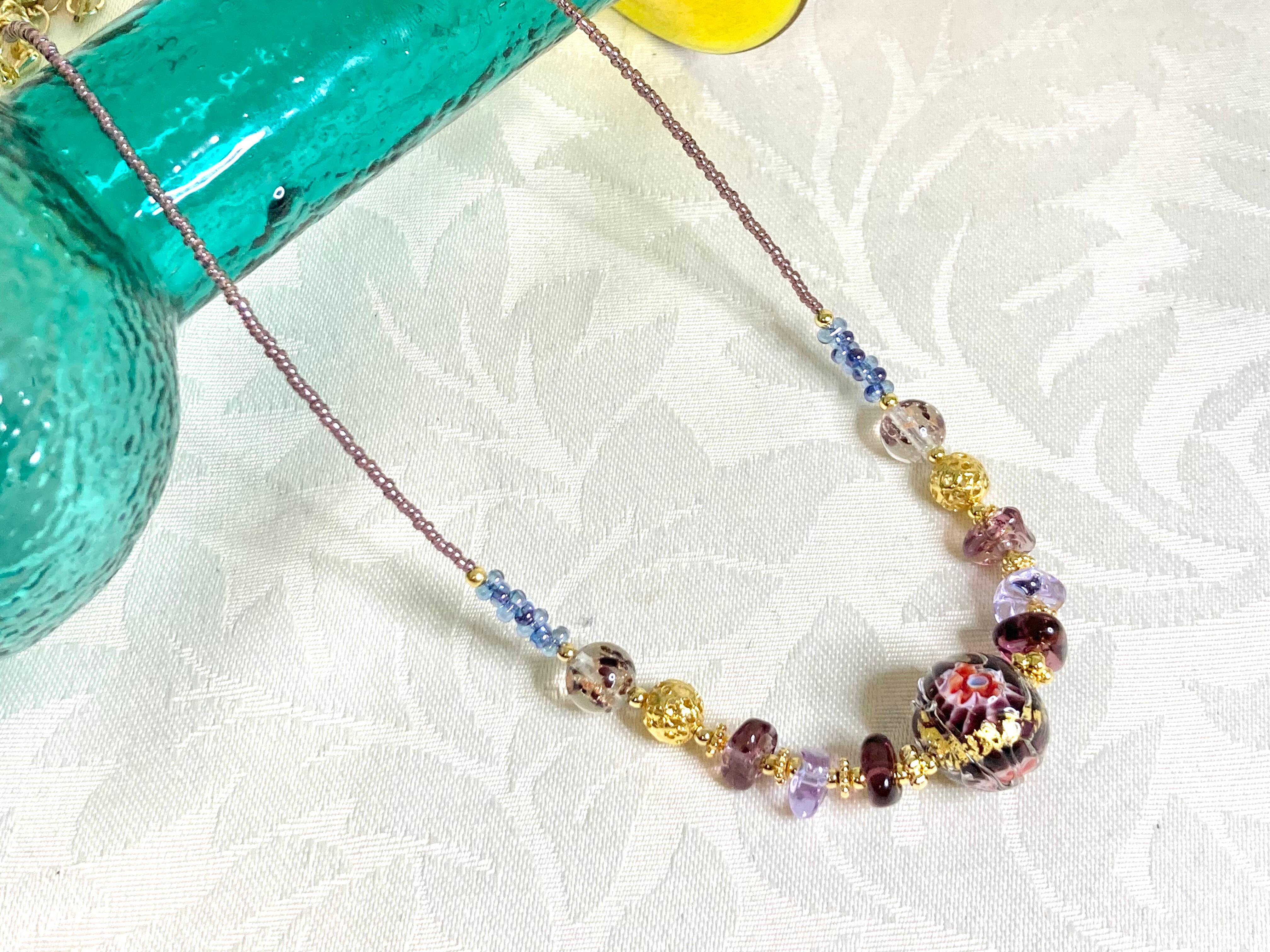 材質:ヴェネチアンガラス17、8mm、ガラスビーズ